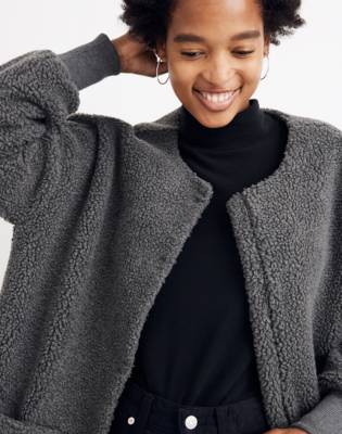 Madewell bonded sherpa cocoon coat. Style K2260 A collarless coat of fluffy high-pile bonded fleece like a teddy bear helps you incorporate cuddly texture into your look with its long clean minimalist cut. Fashion_jackson Grey Sherpa coat tts - small black booties boots winter outfit telluride black boots travel sale alert fashion jackson gifts for her. Wear it like a cardigan over a turtleneck or as your jacket the spacious pockets mean you can go sans bag. Shop Bonded Fleece Cocoon Coat and other curated products on LTK the easiest way to shop everything from your favorite creators. Madewell Bonded Fleece Cocoon Coat. Ad Shop the latest styles of Hudson NYC now DrJays. Oversized fit would EASILY fit XL Hook-and-eye closures Long. New store display with tagsee pics Style K2260 True to size.